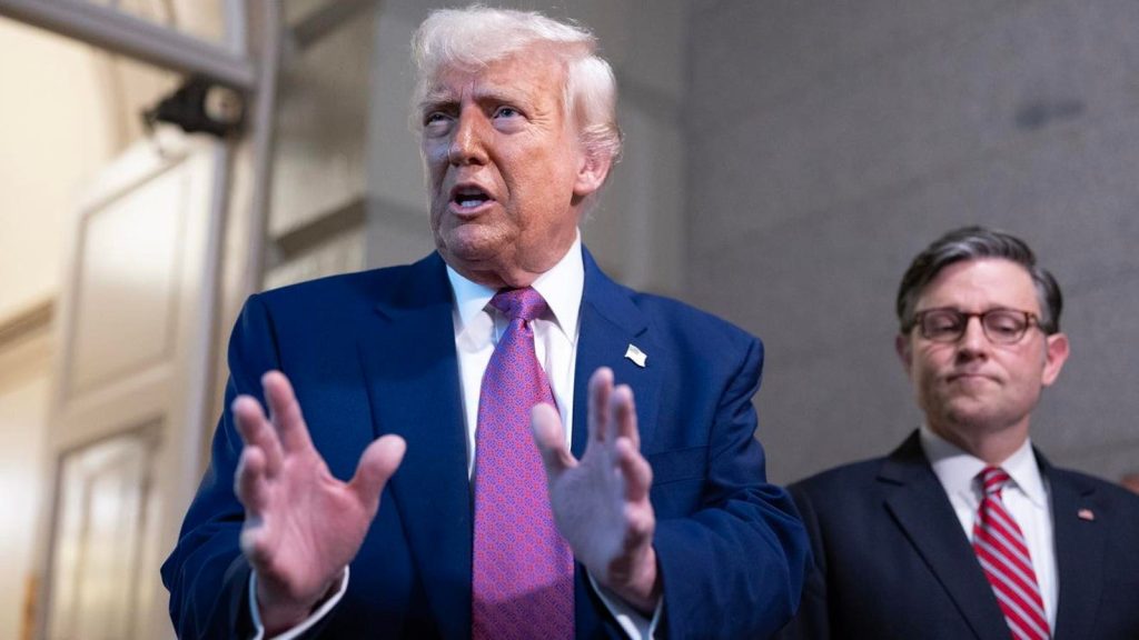 WASHINGTON, DC – MAY 20: President Donald Trump and House Speaker Mike Johnson (R-LA) speak to … More