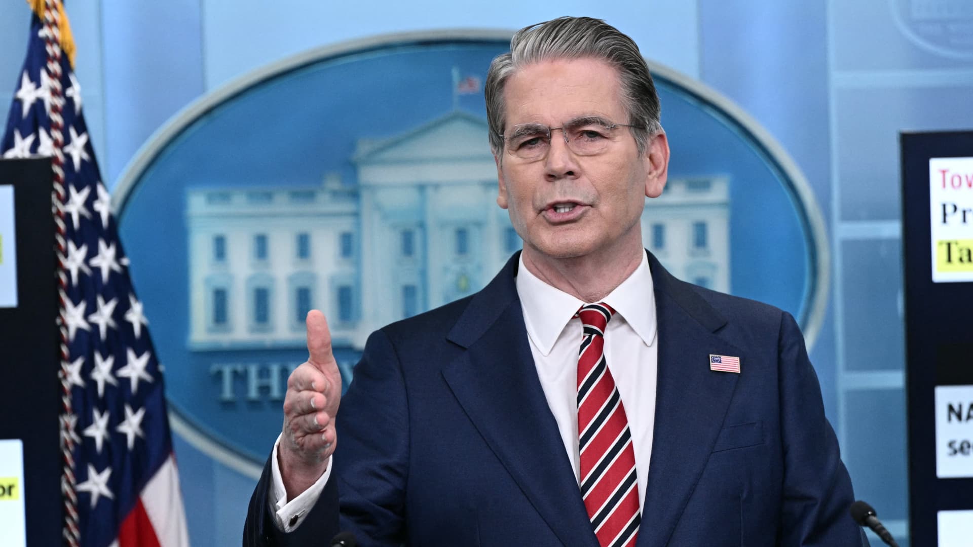 US Treasury Secretary Scott Bessent speaks during a press briefing in the Brady Briefing Room at the White House in Washington, DC, on April 15, 2026.
